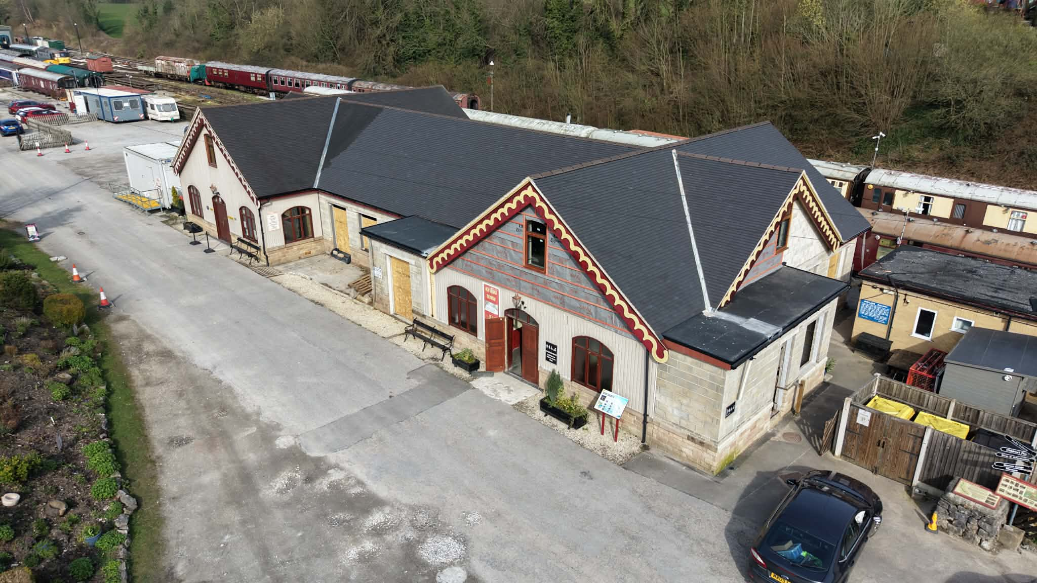 Since 2000, the development of the Ecclesbourne Valley Railway has relied on a collection of temporary buildings, containers and railway coaches to house an interpretative display and museum, an interactive model railway exhibit, information displays, toilets, a shop and catering facilities.